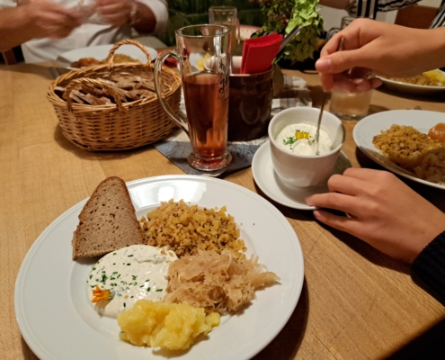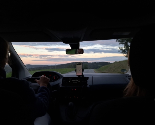 Die Zeit verflog und ehe ich mich versah, war es schon 13 Uhr und meine Fahrgemeinschaft holte mich wieder ab. Wir machten uns auf den Rückweg in unser Ferienhaus. Dort gab es Mittagessen und einen kurzen Austausch über die Fälle des Vormittags. Ich habe eine kurze Runde durch den Wald bei unserer Unterkunft gedreht, bevor es um 14 Uhr weiter zur AOK Cham ging. Auf der Autofahrt wurde gesungen und gelacht.