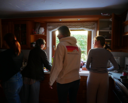Der Tag begann heute wieder früh – um Punkt 6 Uhr klingelte der Wecker. Mit einem warmen Porridge im Bauch und noch etwas müden Augen ging es wenig später mit unserer Fahrgemeinschaft los. Amelie steuerte uns sicher durch die kurvigen Straßen, während die Sonne langsam über der Landschaft aufging. Es ist für mich noch immer ungewohnt, die Berge zu sehen!