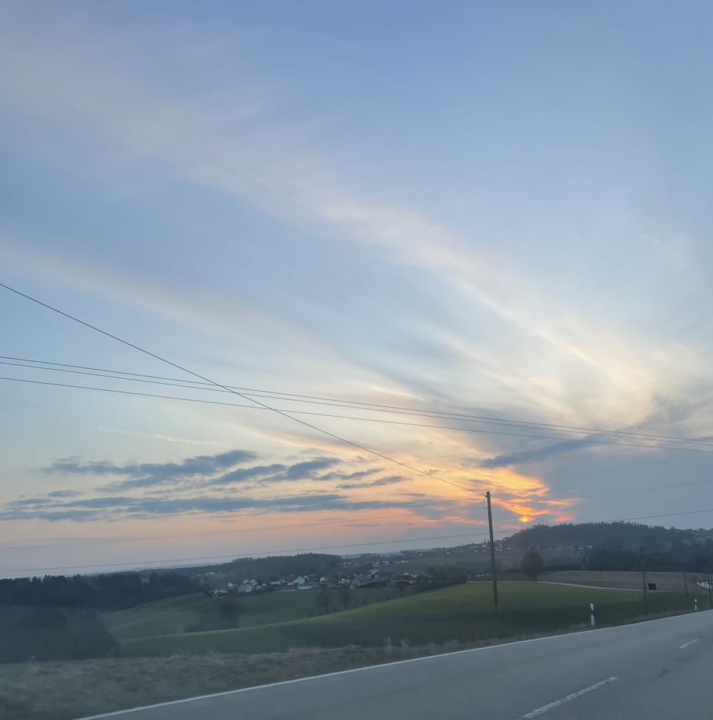Abschließend erschien mir das Bild auf dem Rückweg vom Sonnenuntergang über der idyllischen Landschaft wie ein Symbol für die Erweiterung meines Horizonts und meines Wissens während meiner Famulaturzeit hier.