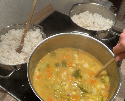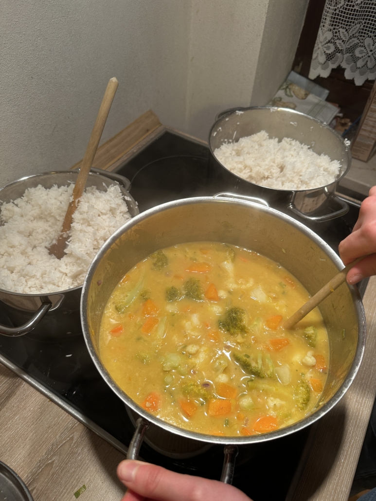 Nach dem Teaching ging es zurück zu unseren Unterkünften. Dort haben wir direkt angefangen gemeinsam zu kochen. Nach dem langen Tag tat es gut, zusammen in der Küche zu stehen, sich auszutauschen und anschließend das selbstgekochte Abendessen zu genießen. So konnten wir den Tag in entspannter Runde ausklingen lassen.