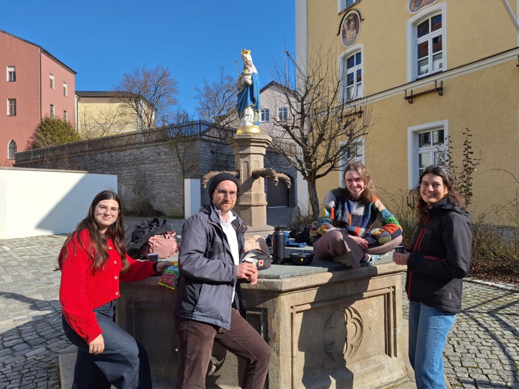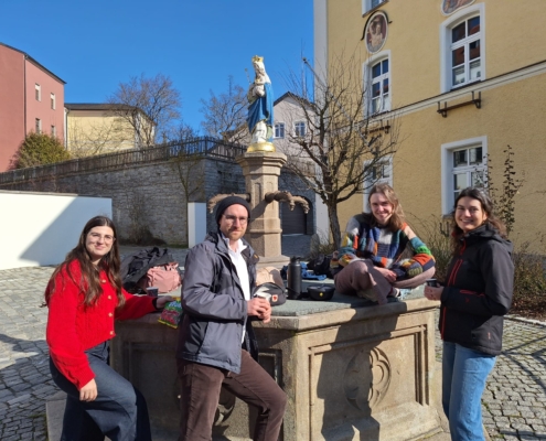 Vor lauter aufregenden Fällen verpasse ich es pünktlich zu gehen und renne gemeinsam mit meiner Famulaturkollegin aus der Nachbarpraxis zum Bahnhof, um nach Furth zu fahren und die anderen unserer Fahrgemeinschaft zu treffen. Zusammen tanken wir in der Innenstadt Energie mit Brezeln und Kaffee im strahlenden Sonnenschein und tauschen uns über das Erlebte aus bevor es zum Teaching nach Cham geht. Dort lernen wir im Wissenskurs anhand von Fallbeispielen, wie sie dem ein oder anderen hier schon während der Famulatur begegnet sind, wie wir am besten im beruflichen Alltag recherchieren und leitliniengerecht diagnostizieren und therapieren können.