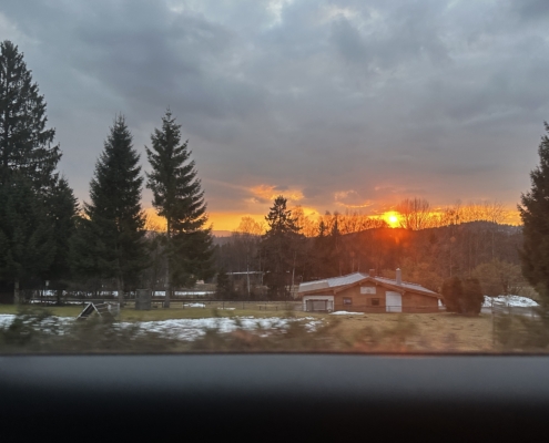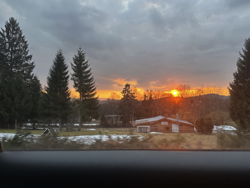 der vierte Famulaturtag beginnt für uns – fast schon in alter Tradition – mit einer Autofahrt zur Blasmusik „Auf zur Jagd“ durch eine von der Morgensonne durchflutete Landschaft mit deutlich weniger Nebelschwaden als in den vergangenen Tagen.