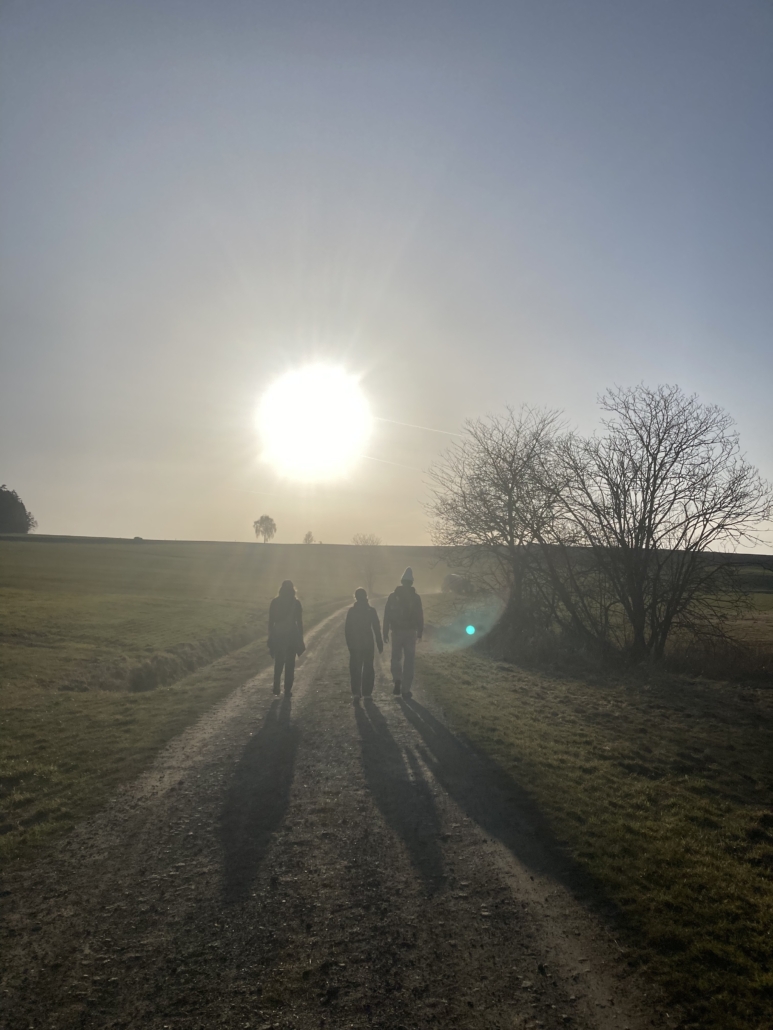 Bei gutem Essen, schönen Gesprächen (& natürlich Kaffee !) genießen wir den Blick auf den Wald. Bei einem anschließenden Spaziergang erlebe ich jedoch einen kleinen Schreckmoment: Ein großer, herrenloser Hund läuft mir entgegen. Nach kurzem Zögern scheint er sich jedoch zu entscheiden, freundlich und schwanzwendelnd mit mir weiterzugehen. Am nächsten Haus erfahre ich schließlich, dass er öfter allein unterwegs ist – also keine Sorge, falls euch im Pfaffenzeller Wald ein Schäferhund begegnet.